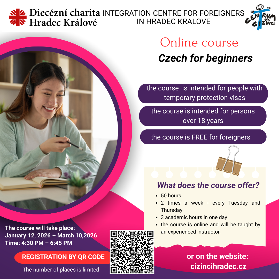 The Integration Center for Foreigners opens an online Czech language course, level A1.1 starting January 2026, intended for complete beginners.