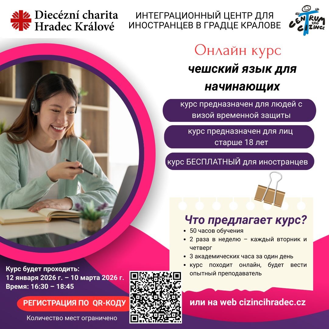 Интеграционный центр для иностранцев открывает с января 2026 года онлайн-курс чешского языка уровня A1.1, предназначенный для начинающих.