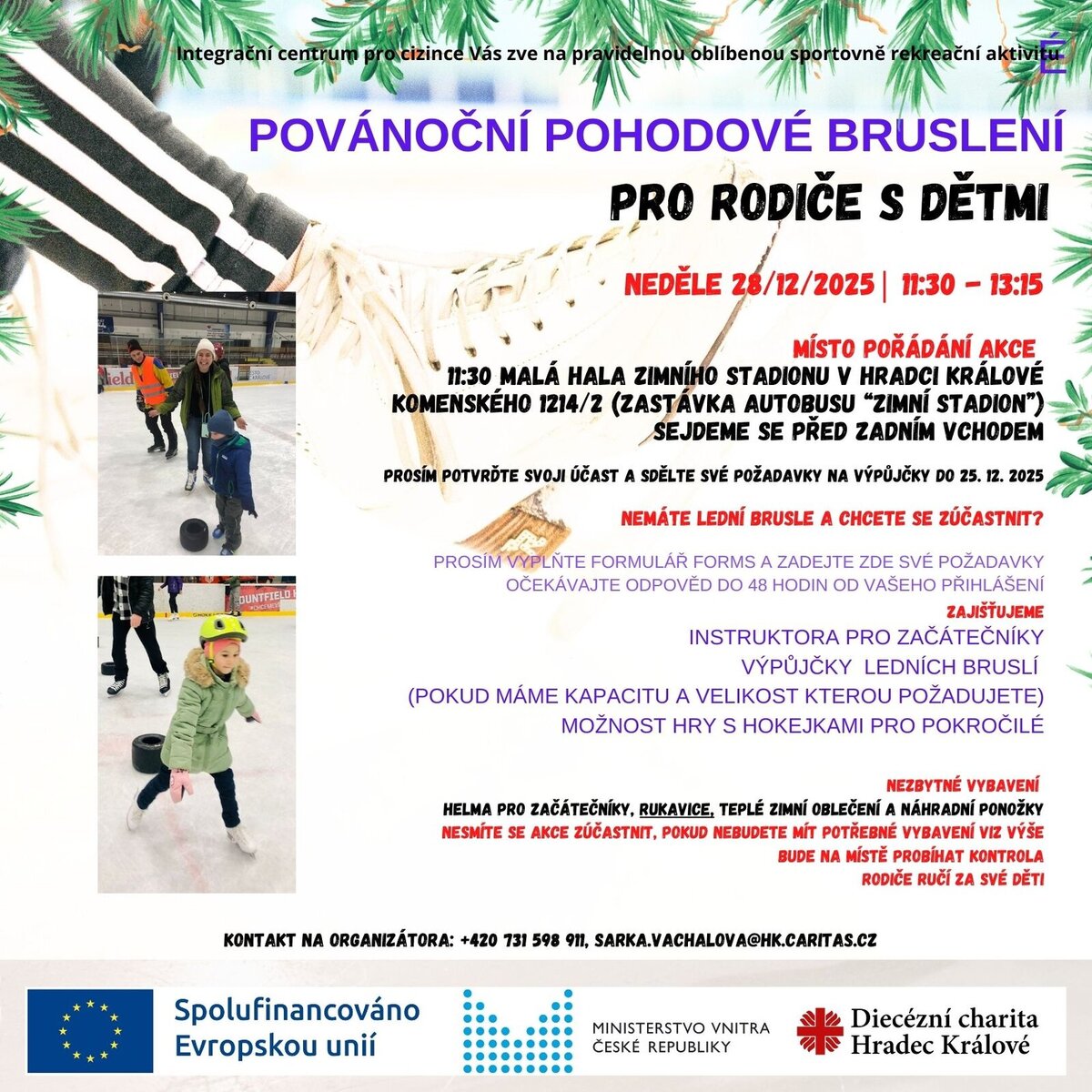 В рамці мультикультурних заходів від Інтеграційного центру для іноземців в Градці Кралове запрошуємо всіх бажаючих на різдвяне катання на ковзанах!